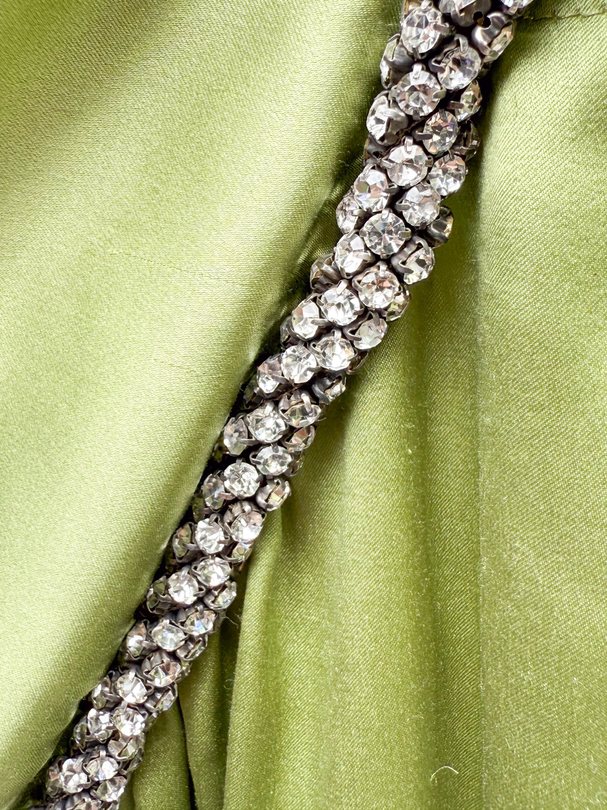 Chloe by Phobe Philo Sage Satin Dress Rhinestone Straps. Size: 44 Length : 34" Waist : 28" Bust : 36" Hips : 40" Straps : 14"