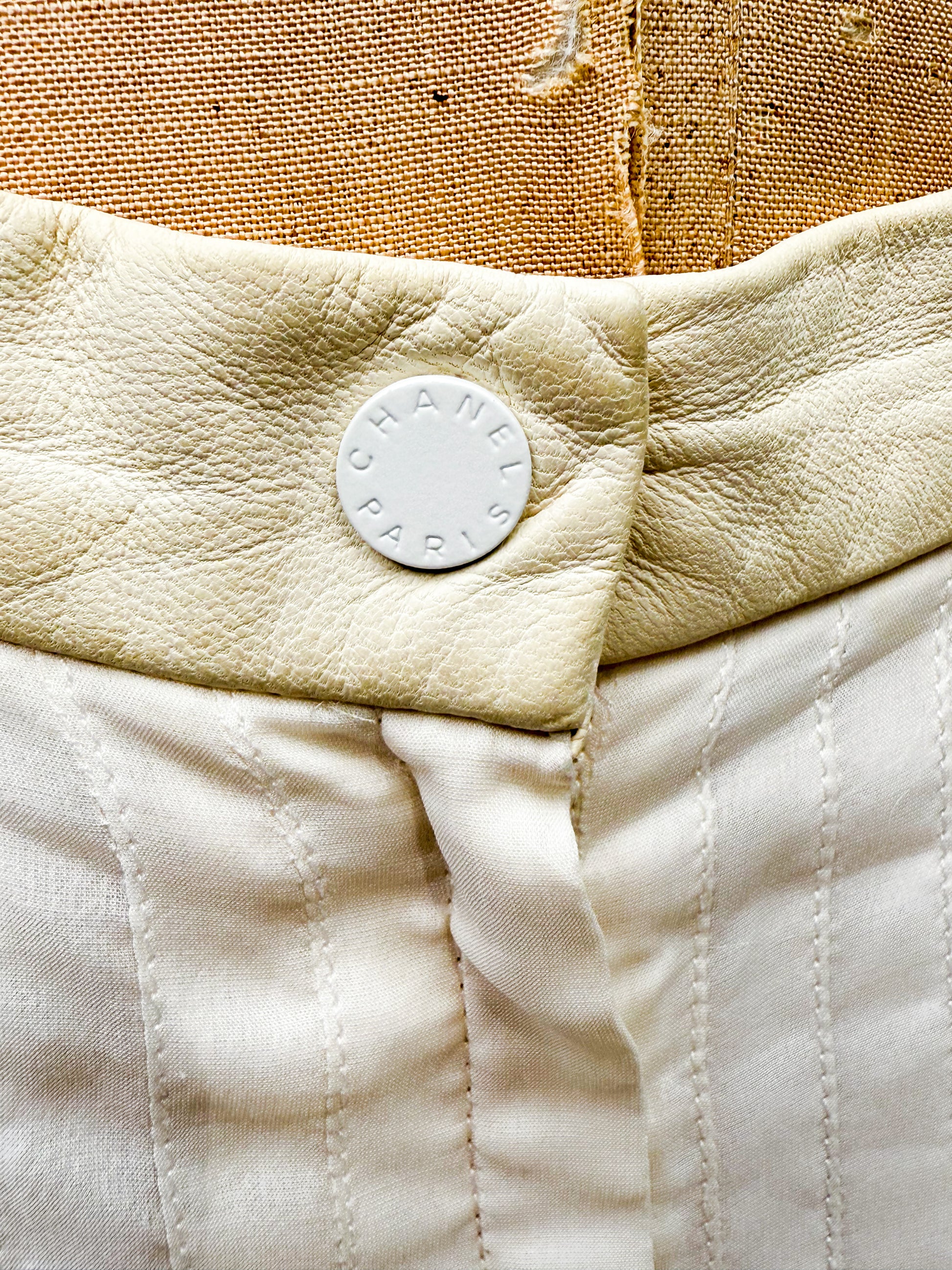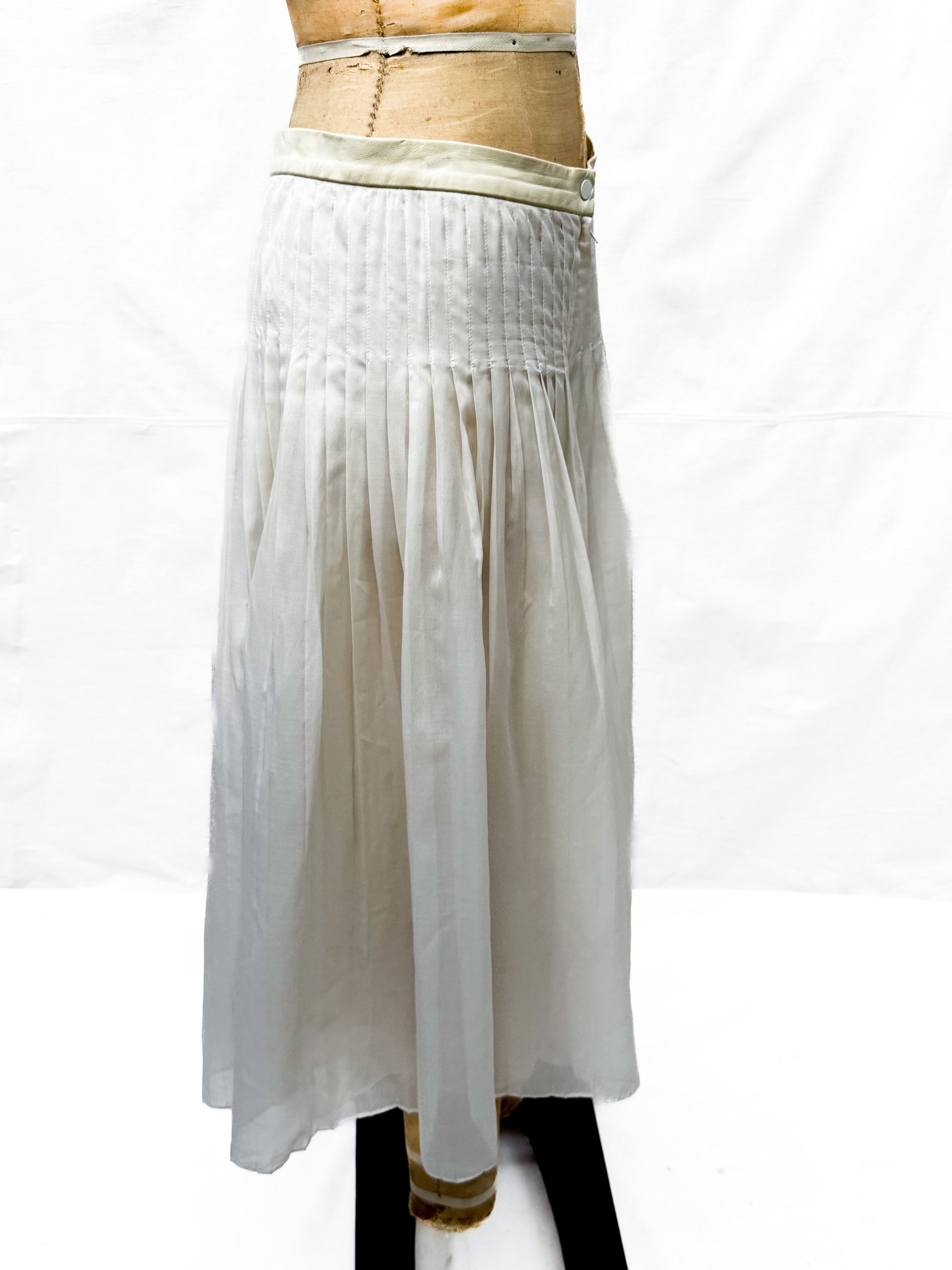 Chanel Cream Pleated Silk Skirt with Leather Trim