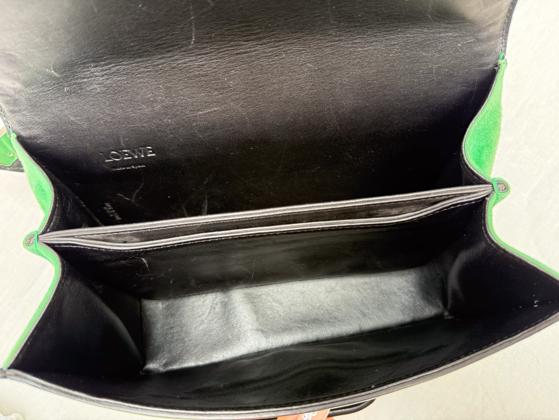 Loewe Sea Green Barcelona Suede Noir Leather Purse